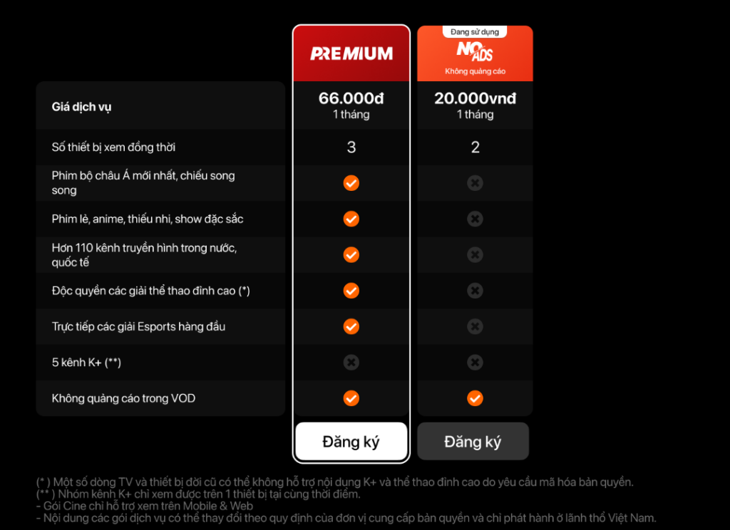 Bước 2: Chọn gói dịch vụ muốn Đăng Ký.
