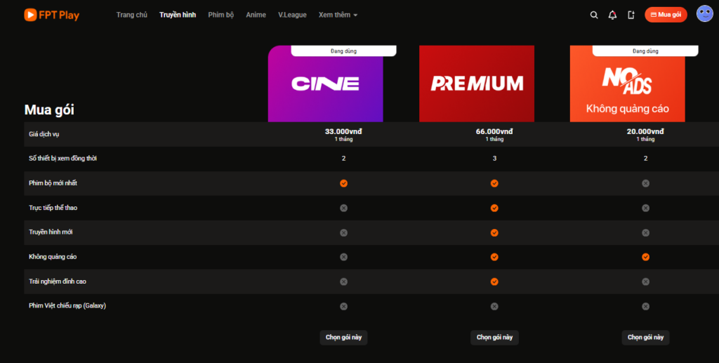 Bước 2: Chọn gói dịch vụ muốn Đăng Ký.
